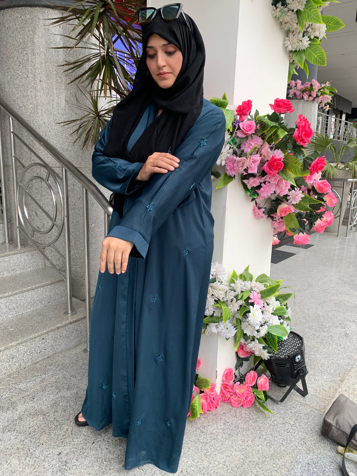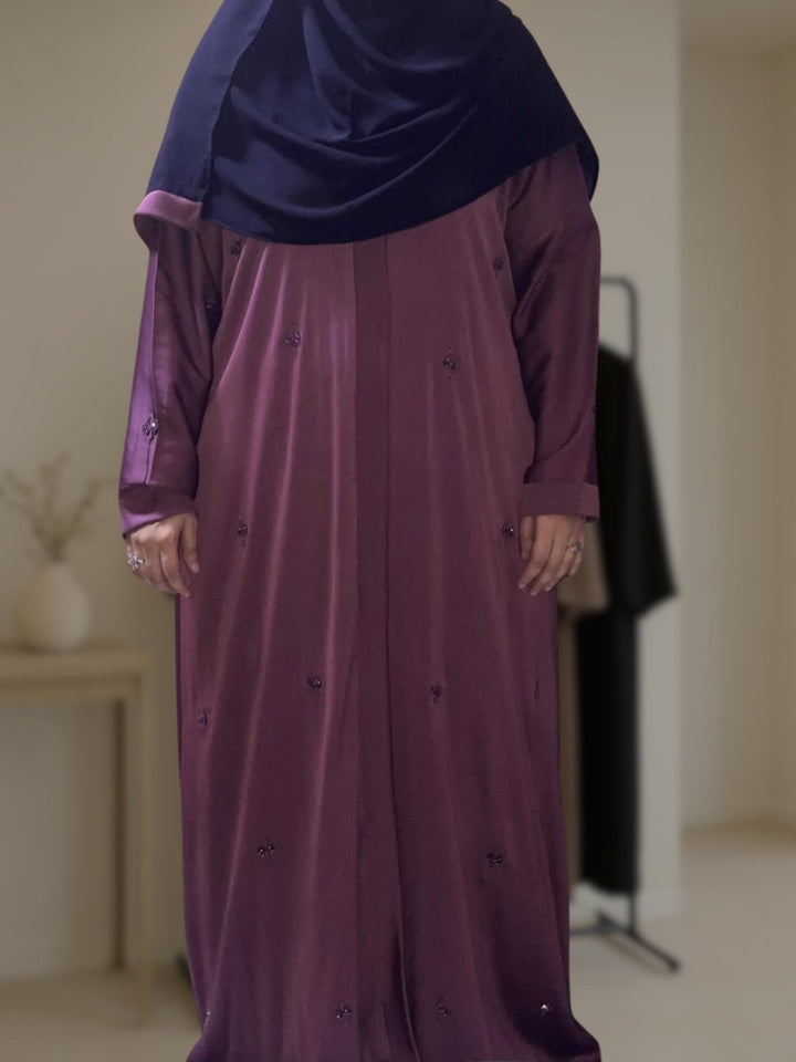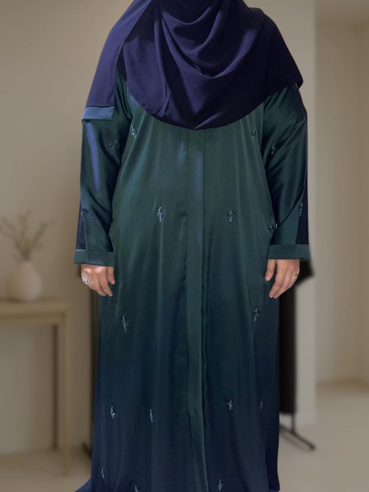 Available in Deep Emerald and Plum Wine, this abaya is the perfect pick for semi-formal gatherings, dawats, or elevated everyday wear.