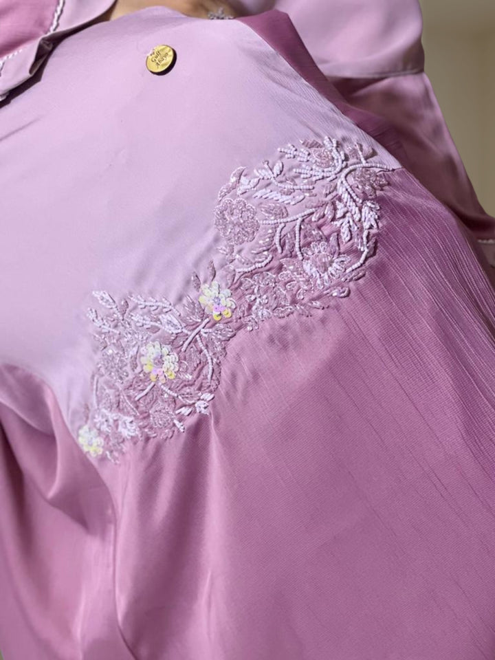 Elevate your modest wardrobe with the Arabian Luxe Abaya, tailored from premium nida fabric for a soft, graceful drape. Its charm lies in the delicate handwork detailing on the daman, sleeves, and dupatta, giving it an artisanal elegance that never goes unnoticed.