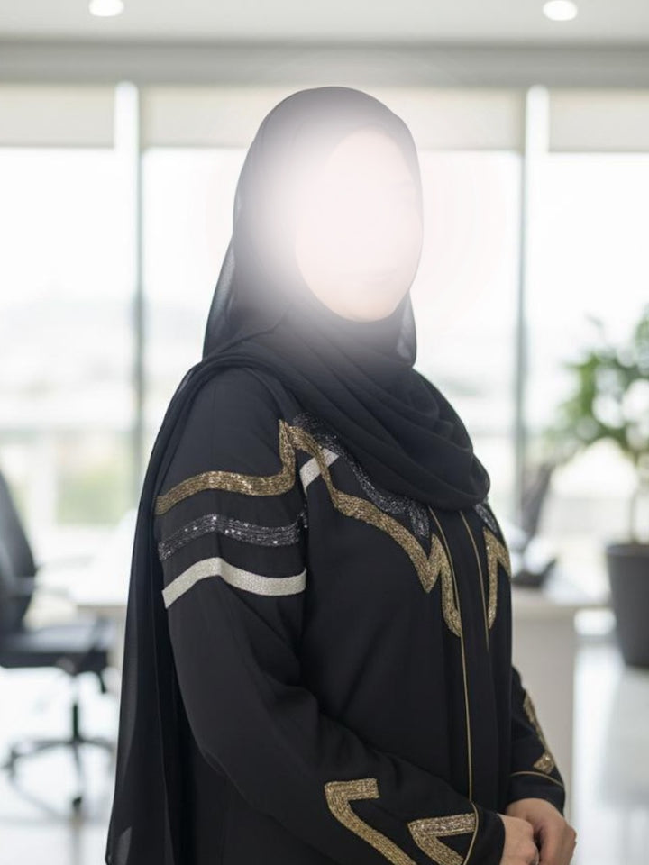 Luxury Hand-Embellished Formal Abaya with Gold & Silver Stoler Detailing